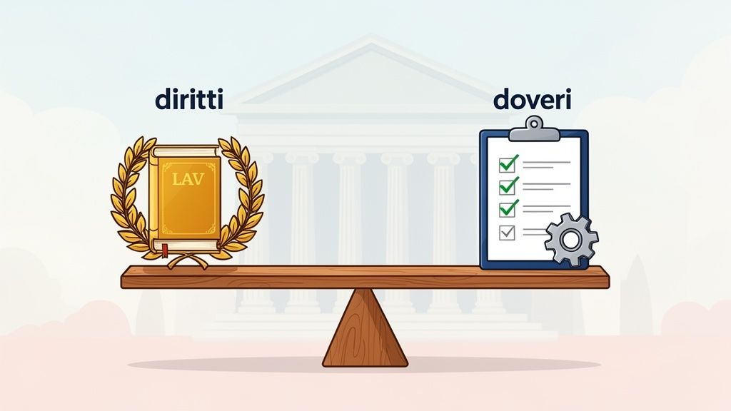 Come puoi vedere, i due concetti sono legati a doppio filo. Non esiste un diritto che possa reggersi in piedi senza un corrispettivo dovere che ne assicuri il rispetto e l'effettività.