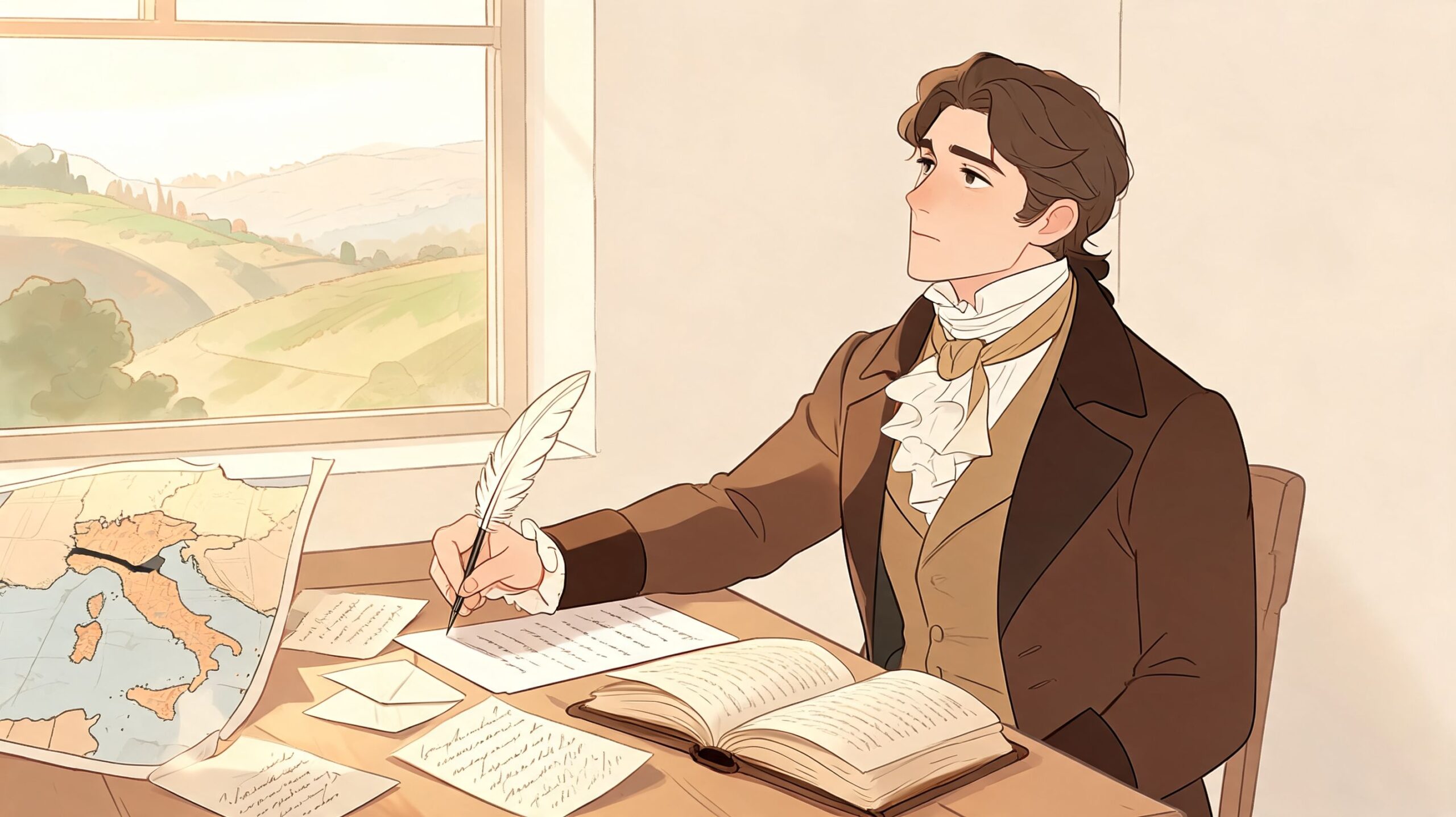 Per leggere bene l’opera bisogna partire dal suo tempo storico. Il punto di svolta è il Trattato di Campoformio, firmato il 17 ottobre 1797 tra Napoleone e l’Austria. Venezia passa agli Asburgo, e per molti intellettuali italiani questo evento assume il valore di una promessa tradita. Nell’Ortis la politica non fa da semplice sfondo. Entra nella coscienza del protagonista e ne orienta ogni giudizio, ogni slancio, ogni caduta.