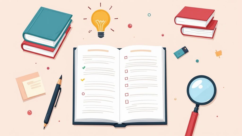 Una scheda di lettura ben fatta su un saggio è il primo passo per costruire una bibliografia ragionata per la tua tesi. Non stai solo riassumendo: stai dialogando con l'autore e inserendo le sue idee nel tuo personale percorso di ricerca.